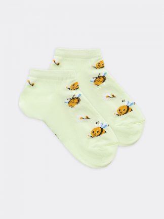 Укороченный детский носок с рисунком в виде пчелок и ромашек.